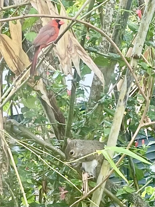 お友達からいただいたバードフィーダーにカーディナルが来るようになる。