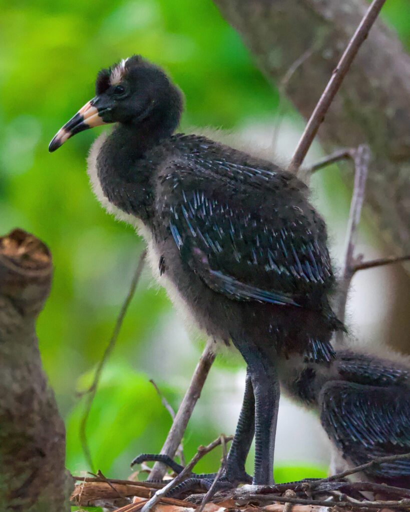 雛から幼鳥は嘴にストライプがあり、目の上から頭にかけて白い線、首の前方にも白い模様が見えます。