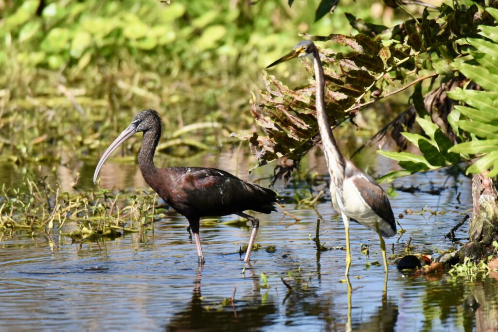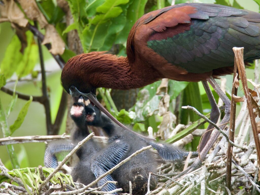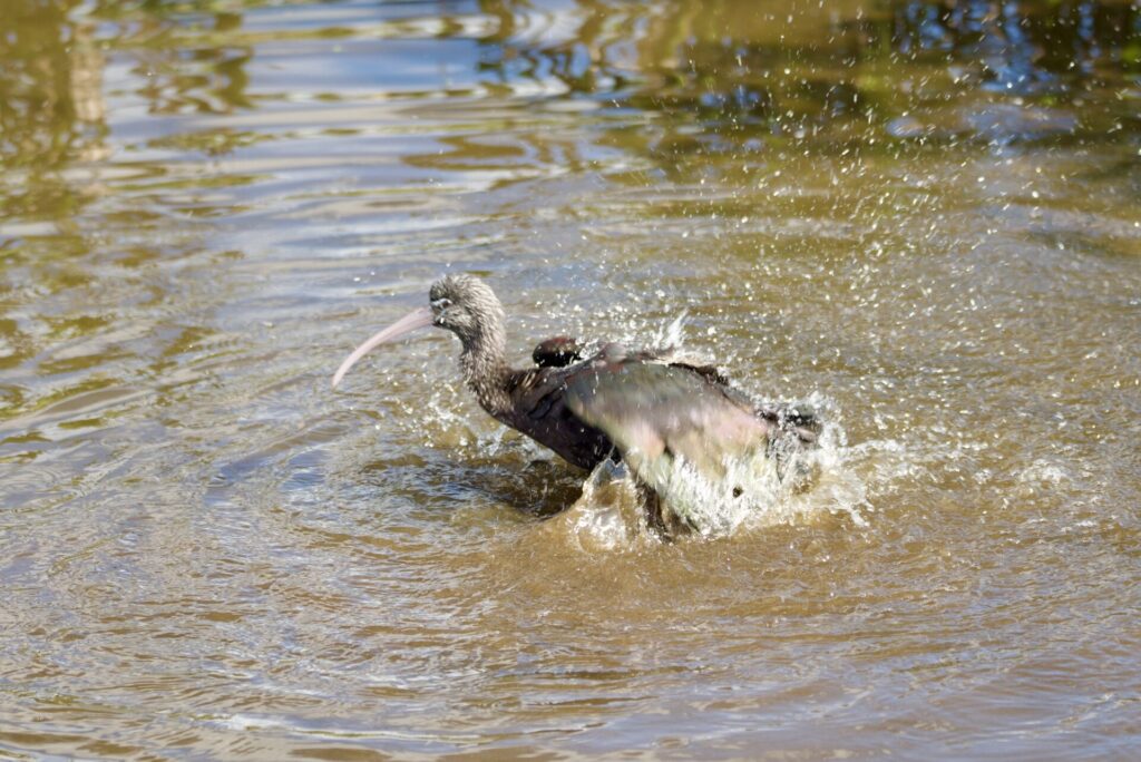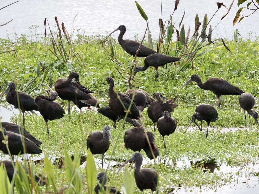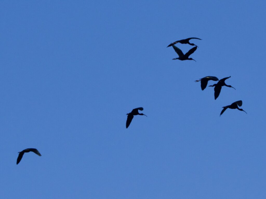 アメリカでは主に南東部、特にフロリダ州、湾岸地域、東海岸部の一部(繁殖期)の湿地帯に数羽から集団で歩きながら採食している姿や飛んでいるをよく見かけます。飛ぶ時はサギのように首を曲げず、まっすぐにして飛んでいます。