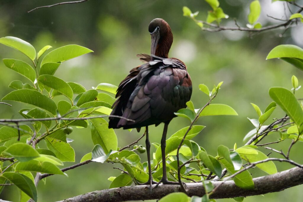 ブロンズトキです。英語名はGlossy ibis(グロッシー アイビス)。トキ科の野鳥で、グロッシーと呼んで親しんでいます。